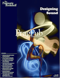 Tony wrote the book on sound design. This book: Programming Sound with Pure Data: Make Your Apps Come Alive with Dynamic Audio. Tony’s a firm believer that sound can be a powerful tool for creating immersive user experiences in apps as well as in games. He thinks it’s important that people programming sound realize that they aren’t just sound programmers, but sound designers. In this month’s PragPub, he lays out some basic principles that should guide anyone’s sound design.